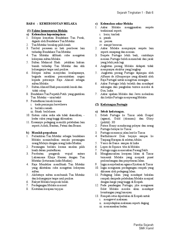 Sejarah Tingkatan 2 Bab 6 6 1 Dan 6 2 Pdf